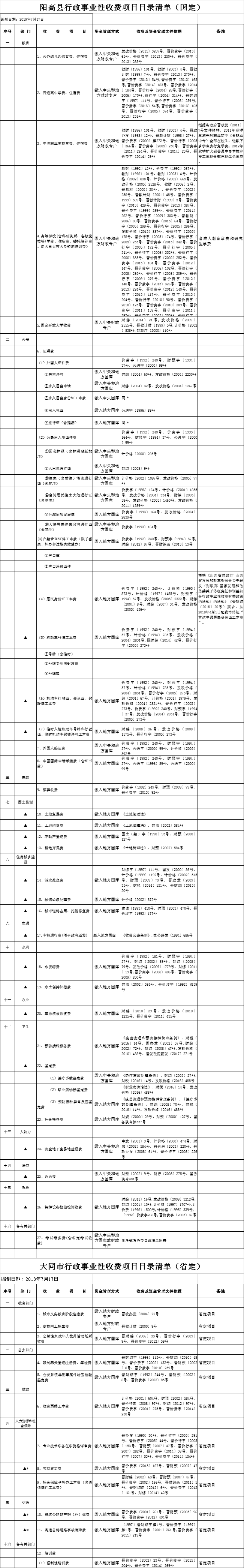 陽高縣行政事業(yè)性收費項目目錄清單(國定)